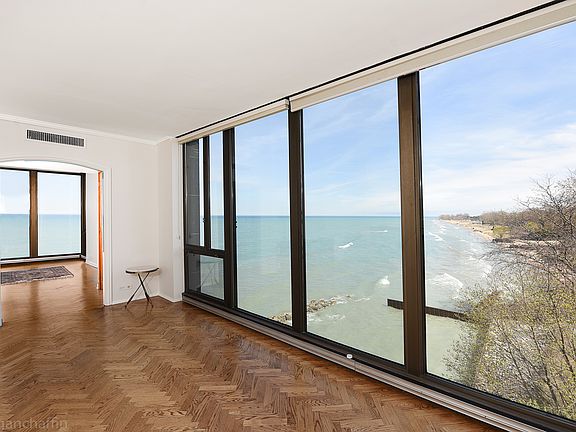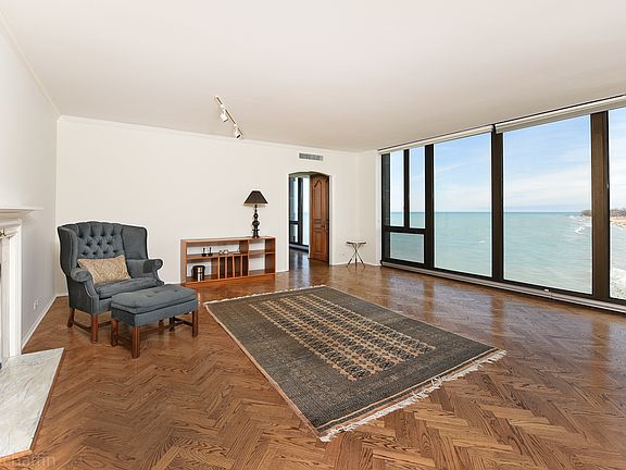 Amazing views from the south east corner apartment. Freshly painted. Gracious living room, dining room, and lake room with herringbone oak floors. Spectacular lake and shoreline views. White kitchen with granite counter tops. Master bedroom with bath en suite and double closets. Guest bedroom has lake view and good closet space. Hall bath with shower stall. Newer carpet in bedrooms. Washer/dryer in unit. This apartment includes two indoor, heated garage spots. Full amenity building: 24 hour doorman, valet parking, weekly car wash, outdoor pool, exercise room. Assessment includes cable tv, internet access, and wifi.