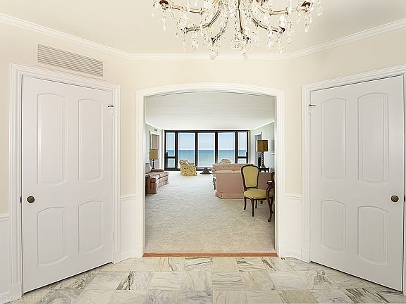 Outstanding views and space in this updated 3 bedroom, 3.1 bath condo. Freshly painted and carpeted. The elegant marble floor foyer greets you as you enter this spacious condominium. The grand living room overlooks Lake Michigan with floor to ceiling windows. Adjoining the living room and also overlooking the lake is a library with sliding glass door to a private balcony. The library also features a wet bar. The dining room also has a private balcony overlooking Lake Michigan. This creates a perfect spot for outdoor dining. The large galley kitchen opens to the dining room and enjoys great views. Generous counter space, double oven, cook top, walk in pantry closet. The large master bedroom has lovely garden views. There is plentiful closet space and a dressing area. The recently update master bath has a dressing area, double sinks, walk in shower, heated floors and so much more. There are two additional bedrooms and two additional updated baths. Laundry room.