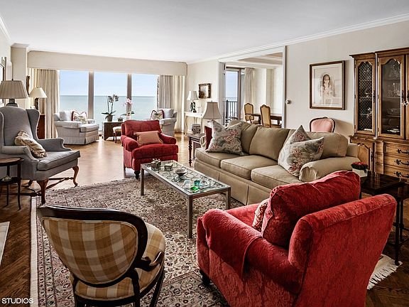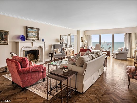 Welcome to 1420 Sheridan Apt. 6G. Sophisticated elegance greets you as you enter the marble floored foyer. This 2 bedroom, 2.1 bath condo has it all! The over-sized living room features a wall of built-in book cases, a decorative fireplace, herringbone oak floor, and floor to ceiling windows overlooking Lake Michigan. Tucked away next to living room is the Lake Room with both east views of the lake and south views of the grounds, pool, and shoreline. The spacious dining room enjoys lake views and breezes from the balcony. The dining doom opens to the kitchen with breakfast bar, generous countertops, elegant cabinetry, fabulous lighting, hardwood floors, a walk-in pantry, and so much more. There is a laundry room with side-by-side washer, dryer, and a laundry tub. From the foyer, the gallery leads you back to the two bedrooms each with bath en suite. The gracious primary bedroom has fabulous west views of the beautiful gardens. There is a walk-in closet, dressing area, and full bath with separate walk-in shower and whirlpool tub. The guest bedroom has lots of closets and has a updated bath with walk-in shower. This full amenity building has 24 hour doorman, on-site management, on-site maintenance staff, valet parking, weekly car wash, exercise room, and outdoor pool. Also included in the assessment is internet, WIFI, cable, air conditioning, water, and much more. Why not call this home? Parking space #15. Storage locker C-41.