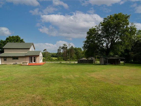 Come enjoy country living at it's best on this beautiful 2 acre property that is located right across the street from a hunters paradise! This adorable two bedroom home has been taken care of and well maintained. The first floor provides an inviting sunroom area with first floor laundry! The upstairs stays warm and cozy in the winter months as it was taken down to the studs, had complete wiring upgrade, and fully insulated! The home has dual paned windows, enclosed front porch, lots of garage/shed space and is equipped with an outside generator with manual switchover! Basement was fully waterproofed in 07/2022 and a new submersible well pump was installed in 2017!