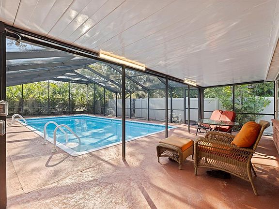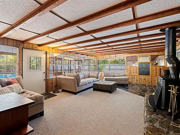 Live the Florida lifestyle in this spacious mid-century pool home with direct golf course views in Tampa’s North Side Country Club community, with views of the beloved Babe Zaharias Golf Course. This home offers the perfect blend of character, space and opportunity. Built in 1954, this home is being sold by the second ever owner! While cosmetic updates will allow you to make it truly your own, it has been maintained where it matters most. The HVAC is a 2019, the whole home has been replumbed, as well as rewired, and 36 solar panels ensure energy efficiency. With the essential systems already taken care of, you can put your energy into personalizing this mid-century home to make it uniquely yours. The home unfolds into a layout designed for connection: formal living and dining rooms, plus views of the pool and the fairway beyond. The kitchen features solid wood-core cabinetry, offering durability and charm with the potential to be refreshed to your taste. Throughout the home, the thoughtful floor plan supports everyday living as well as effortless entertaining. The accent wall made of real stone and the Ben Franklin wood stove add a warm, cozy focal point that sets this home apart from today’s newer builds. The split-bedroom layout provides privacy, and storage is abundant. Practical upgrades include an ADT security system, irrigation system, and the home is wired for a generator in case of power outages. Outside, you can embrace the Florida lifestyle: a screened pool for sunny afternoons, a fully fenced backyard perfect for pets or play, and avocado and mango trees that bring a touch of the tropics to your own backyard. A rarity in this neighborhood, the expanded, powered studio-style shed opens up endless possibilities — an art studio, home gym, workshop, office, game room, or workshop. Set in a sought-after community close to local dining, shopping, and everything Tampa has to offer, this home is more than a place to live, it’s a lifestyle waiting for your personal vision.