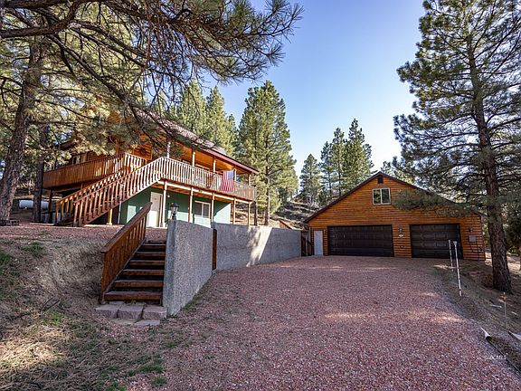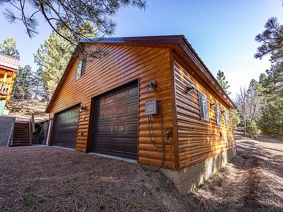 Offering plenty of mountain charm this 3 level cabin is located in Elk Ridge Estates Unit 1. Main level has open floor plan, large dining area, comfortable living room with electric fireplace & kitchen with beautiful new granite counter tops which are also in the 1/2 bath with pull out lower drawers in kitchen and bathroom. Main floor laundry room leads out to a covered side deck that meets the large front deck with beautiful views. Master bedroom with lots of closet space & guest bedroom are upstairs with 3/4 bath featuring pretty tile shower. Lower level has guest bedroom, full bath, remodeled office & new TV room with sofa sleeoer, mechanical room and lower entry room leads out to walkway to 1064 sq ft garage. Garage has a man door, double garage door and single in & out doors, 1/2 bath, lots of storage & work space, room for cars & toys & is heated & cooled.448 sq ft finished room in upper garage with separate outside stairway for storage, kids play room or get-a-away. Cabin has electric baseboard heat, 2 cooling units, water softener and stand by generator hooked up to propane. With lots of wildlife & chipped sealed roads for no dust or mud, it doesn't get better than thi