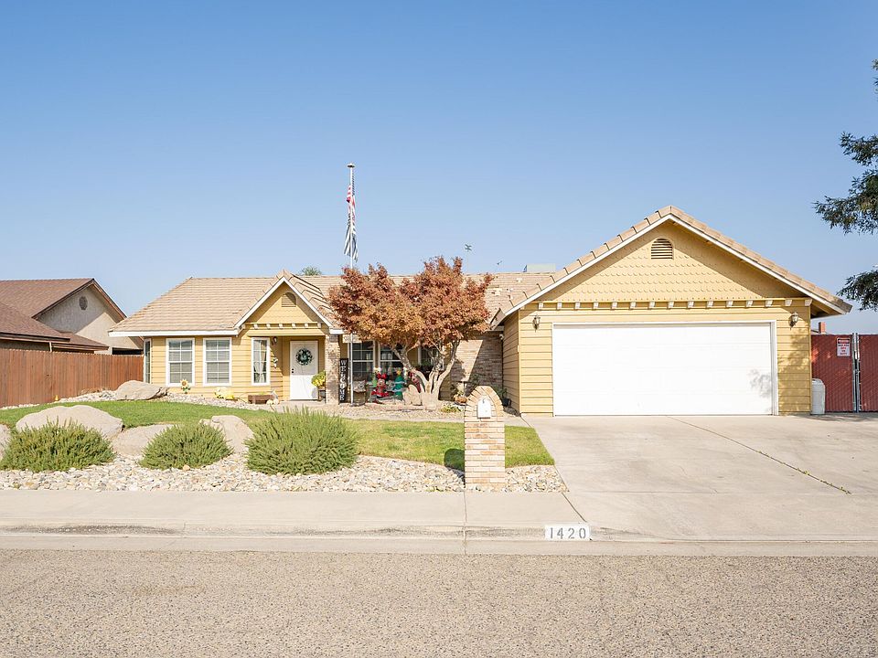 Move in Ready Home! Located on the North West side of Porterville is this beautiful family home! The curb appeal on this house is picture perfect with mature landscaping including a Japanese Maple providing shade and a view. Inside is an office space with door to close when you're in important zoom meetings. The eat in dining space is large and opens to the nicely updated kitchen. The step down living room has a full brick fireplace and two sets of French doors that bring in natural light. The split floor plan offers the master suite off the living room. It has an updated bath and walk in closet. On the other side of the home are 2 guest bedrooms and a shared guest bathroom. The backyard is an entertainers dream with covered patio, large pool with rock waterfall feature, grassy area for kids to play or fur kids to run, an a large side yard with double gate entry. This home will not sit for long! Call for a private showing today!