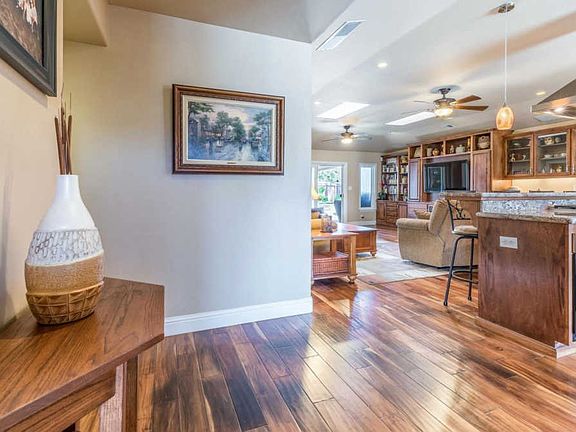 Absolutely Stunning home with nearly 2100sf, owned solar, sparkling pool, RV parking & in the highly acclaimed Clovis School District! This gorgeous home has been completely remodeled in the last few years & SHOWS LIKE A MODEL!!! From the moment you arrive you are sure to be impressed with the open floor plan, the gorgeous hardwood floors, separate living room & a beautiful great room with custom built-ins all open to the incredible kitchen. Speaking of which, the kitchen is AMAZING & is sure to make any chef jealous; boasting a walk-in pantry, granite counters, stainless appliances, gorgeous cabinetry, dual ovens, bay window & bar seating! The large master bdrm suite features a private master bathroom & access to your backyard paradise. As you venture out back you are greeted by the custom sparkling pool, large covered patio & two large storage sheds with power. Sq.ft. differs from tax records, buyer to verify if concerned. This amazing home has it all... must see today!