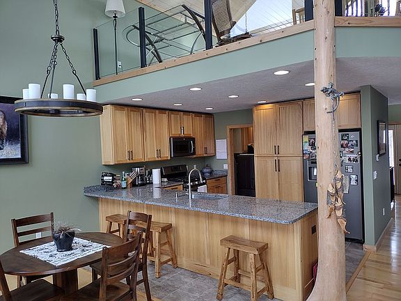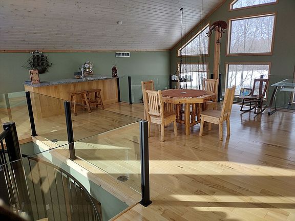 Beautiful quite place with deer and turkeys. 2 x 6 inch exterior walls with spray foam and cellulose. Open great room, dining and loft with glass railings. Heated master bath tile floor. Whole house generator. 60 x 40 Wicks work shop with in floor heat and in floor electric and vacuum system. Large rear composite deck overlooking walnut woods. Heated Three car garage with dumb waiter to basement.