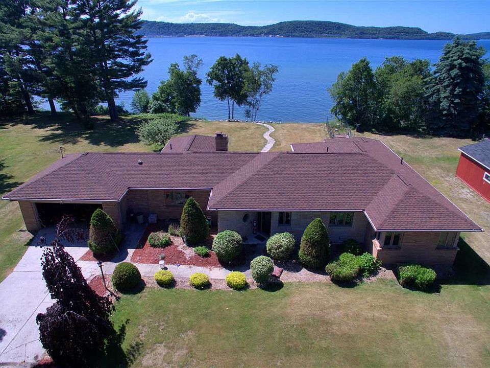 Lake Superior home with 100 feet of sandy frontage and a gorgeous views of Munising Bay!! The home features 3 bedrooms, 2.5 baths, 2 car attached garage and a full basement. The updated kitchen features beautiful granite counter-tops and an island with an extra prep sink and butcher block top. A 5x10 pantry full of shelves will be sure to meet all of your kitchen storage needs. The breakfast nook surrounds you in windows bringing the view in. A great place to drink your coffee or curl up with a book. The oak hardwood floors run throughout most of the home and will bring you to the living area with natural a gas fireplace and a wall of windows lakeside. The horseshoe shape of the home lends to a very private deck off of the living room and breakfast nook which great for family cook-outs or basking in the UP days. All of the bedrooms are on one side of the home. The master suite is across from the laundry room for easy access. It also features a beautiful double sink bathroom with a stand-up shower and soaking tub as well as a huge walk-in closet. The other two rooms view the lake and have a full bathroom next to them making it easy for family visiting and or guests. This is a very well-maintained home with high-quality newer windows, a brand new roof as of 2014 and beautifully landscaped yard including a vegetable garden area. The lake frontage has a walkway to it with a sandy spot as well as a break wall created by the Army Corp of Engineers that will be sure to protect your frontage from Mother Superior. The frontage is a great opportunity to store your boat or jet skis. This is your opportunity to be located near Munising, Pictured Rocks, Sand Point Beach, Munising Falls AND on Lake Superior. What are you waiting for?!?