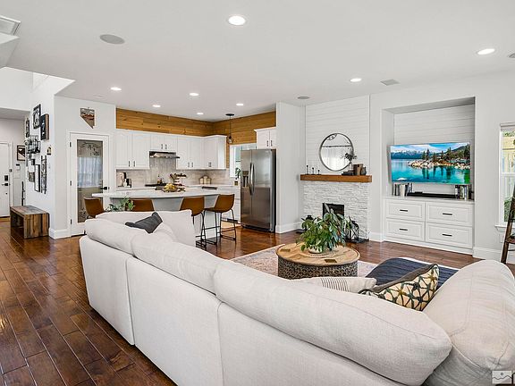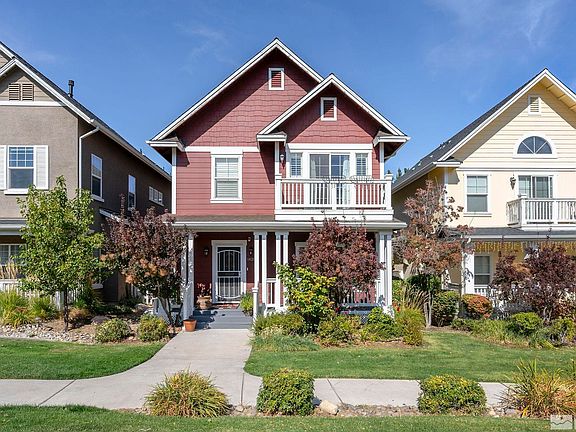 Welcome Home! A must see turn key home located in the Old Southwest neighborhood of Reno offers two Primary Suites (one up/one downstairs) with walk-in closets, upgraded tile design, claw foot bath tub, large walk-in shower, and dual separate porcelain vanities . The kitchen is light and bright with white cabinets, pantry, stainless steel appliances, large island with quartz countertops, farmhouse sink, convection oven with Air Fry mode. The upper kitchen walls have a natural wood color shiplap., The main living area has medium tone mahogany wood flooring, separate dining area, fireplace, and added storage under the staircase. Upstairs is the 2nd primary bedroom along with 2 guest bedrooms divided with a Jack & Jill bathroom that has double sinks, tiled shower/bath. The good sized loft can be used for a gaming /office/workout area. Relax and take in the views from the upstairs wrap around balcony, cute front porch, or the back patio. New $11k furnace in 2023 and the ridge, washer, and dryer stay!