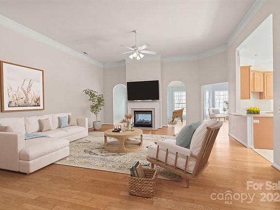 Step into your charming ranch home nestled on a spacious .46-acre cul-de-sac lot! This impeccably maintained gem resides in the desirable Porter’s Landing subdivision, just a stone’s throw from Mint Hill. Conveniently situated minutes away from I-485, shopping, and dining. Inside, discover a delightful open floor plan boasting soaring ceilings in the main living spaces, gleaming hardwoods, and elegant crown molding. The kitchen offers a large footprint with plenty of cabinets, recessed lighting, and a breakfast bar island. Relax in the inviting family room featuring stunning arched doorways leading to the sunroom, complete with a double-sided gas fireplace, and abundant natural light. The primary suite features tray ceilings, a spacious walk-in closet, and an ensuite bathroom complete with a garden tub and separate shower. Large secondary bedrooms. Enjoy the fantastic fenced-in, level backyard featuring an oversized patio, ideal for all of your entertaining needs! Don't miss this one!