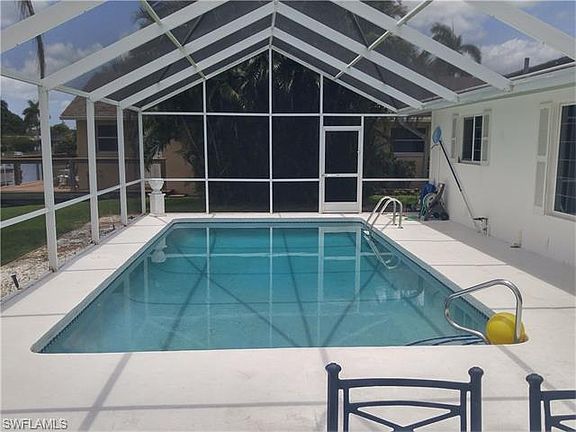 Great location, excellent investment opportunity. Very well maintained Gulf Access Pool Home, turnkey furnished and newly remodeled. Only minutes to the Gulf of Mexico with one bridge, no lock, southern exposure, in a quiet and safe neighborhood, cul-de-sac. Close to down town, lots of restaurants and shopping, 3 bedrooms, 2 baths, open floor plan with light and spacious great room, large pool with extra large lanai along the entire width of the house, 2 docks, one concrete, one wooden (captains walk) with 8 lb. boat lift. Most everything is updated or nicely renovated - tiles throughout except 2 bedrooms with carpet, newer kitchen, newer huge pool cage. A very private setting with gorgeous views to the canal. Home is in a successful seasonal rental program. All assessments in - water, sewer, irrigation - and paid in full!