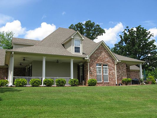 Total square footage is 3300 sq ft Great home located in DeSoto County, Lewisburg Schools, and Lewisburg water available. This 4 bedroom, 3 bath home on 3.23 acres with pond is 1.5 miles from the soon to be I-269 and Red Banks Rd interchange. Home has split family or income potential with complete bath and kitchen in 1300 sq ft upstairs with separate entrance. House has 2 car garage, 2 covered porches with ceiling fans. Features include 9 ft ceilings, plantation shutters, ceiling fans and crown molding through out house. Hardwood floors are in dining room, living room and all bedrooms. Kitchen has granite counter tops with built -in Stainless Steel appliances. There are 2 gas log fireplaces, one in the living room surrounded by built-in shelve bookcases and cupboards, and the other fireplace in the den. The large master bedroom has 2 walk-in closets. Master bath has 2 sinks, separate tub and shower. Both bedrooms have large closets and the hall bath has new tile and linen closet. Upstairs has a full tile bathroom and shower, complete kitchen, large living space and a separate storage room. All areas have laminate floors, oak stair treads and a separate HVAC system.