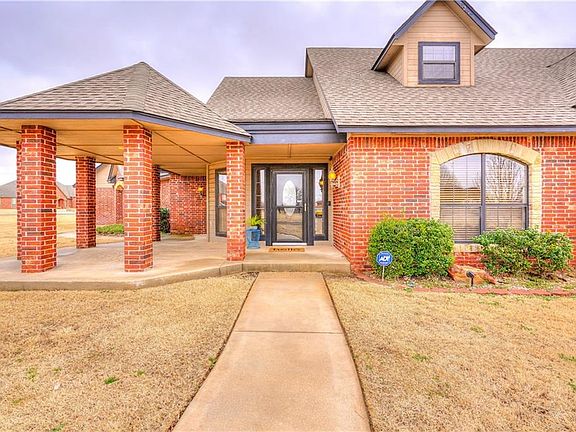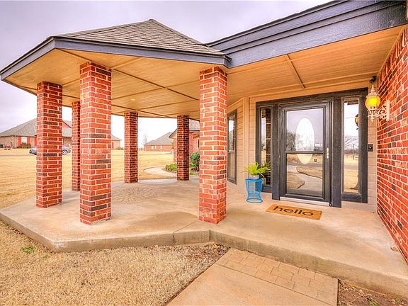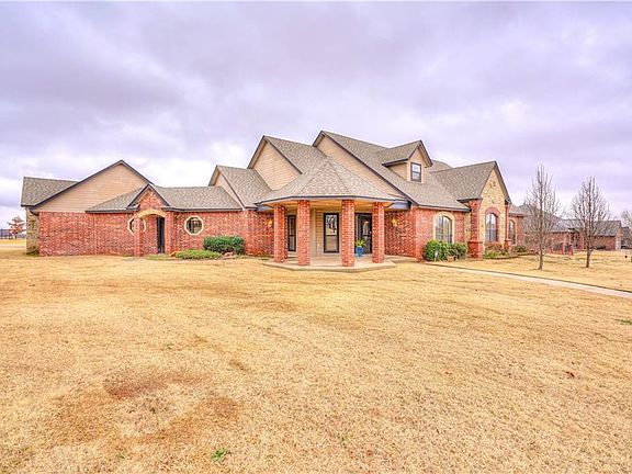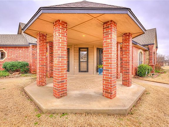 Enjoy the peace, quiet, and this beautiful open concept home with lots of room on .75 acre in Deer Creek School district! You will love the large exposed brick accent wall and fireplace in the living area that opens to a large kitchen with huge island, granite counter tops, pantry, breakfast bar, and spacious dining area. Off the kitchen is an extra living space with fireplace and its own entrance, could be used as a study or great for a home business. Relax in the master suite that has a sitting area, fireplace, and it's own patio that is perfect for watching sunsets. Master bath has whirlpool tub, amazing walk-in shower, double vanity, and walk-in closet. Additional 3 bedrooms are large with roomy closets. Stained concrete floors throughout make cleaning and maintenance so easy. Bonus room upstairs has tons of room, access to attic storage and a hidden storage/reading room behind the bookcase. 4 car tandem garage and storm shelter. Easy high way access for quicker compute times.