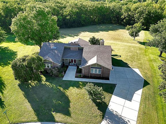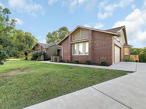Hard to find property like this in Wichita area ! Jay Russell, Custom Built home, 4 large bedroom, 3 1/2 baths, sunken living room with fireplace, formal dining, hearth room off kitchen with gas fireplace. Eating bar in kitchen, with built in china cabinet. Master bedroom suite with walk in closet, shower and bath. Laundry room in master bedroom separate closet. Patio doors off master bedroom, exit to closed in sunroom which overlooks almost 1/2 acre of backyard wooded, with 4 mile creek on backside of property. Deer, turkeys, and wildlife, can be seen all year long. Walk out basement with 2 large bedroom, Rec room with gas wood burning fireplace. Wet bar, full bath, Large family room, patio doors on all 4 sides of the lower level sunroom. The sunroom has hot tub. Beautiful woodwork and windows in every room, double closets in every bedroom. Foyer with 2 coat closets. HOME IS GETTING A NEW ROOF AND BUYERS CAN PICK OUT THERE OWN COLOR! No HOA's Call for your private showing today!