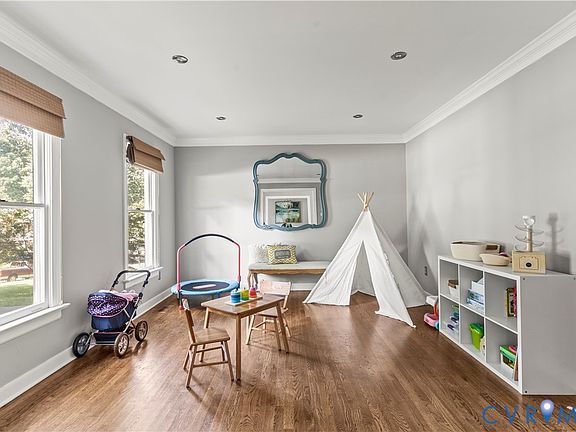 You will fall in love with this darling house on a corner lot with a big fenced back yard. You enter a spacious foyer with an extra large living room (presently being used as a fun filled play room) on one side and the light filled dining room on the other. Straight ahead is the lovely family room that opens to the deck and fenced back yard. A gas fireplace will make those cold winter nights cozy. The kitchen has striking blue cabinets with under counter lighting, granite counters and a pretty tile backsplash. Stainless steel appliances and a gas stove with gridle cooking will make Saturday morning breakfasts fun to whip up! Off the kitchen is the mudroom and half bath. This was the original laundry room and still has the option to put your washer and dryer here if you prefer a 1st floor laundry room. Both floors have hardwood flooring. Upstairs you will find a large Primary bedroom with a huge walk in closet and an updated bathroom. Through the closet you will see a marvelous 2nd floor laundry room with plenty of storage and counter space making it a great hobby area too! 3 more bedrooms and an updated hall bath round out the 2nd floor. The walk up attic has plenty of space for storage. Brandermill has tons of walking trails, parks and pools, golfing and access to the lake make this a beautiful place to call home. Easy access to 288, Powhite, excellent Chesterfield County schools, shopping and great restaurants!