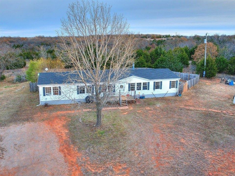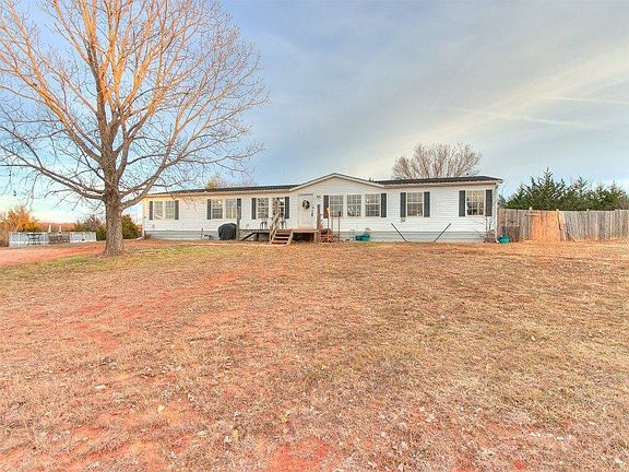 Are you dreaming of space inside and out? This one will check the boxes!4 bed 3 bath home sitting on 5 beautiful acres, paved road leading to home, with close access to Turnpike in Luther Schools! This home has more space inside than most manufactured homes with a HUGE living area with wood burning fireplace, good size kitchen with island and pantry, great layout with primary suite split from the other 3 bedrooms and 2 other full bathrooms, all bedrooms have access to bathroom! Living room opens to kitchen with private dining room. This home has great storage throughout! The primary suite has a soaking tub, big walk in closet, shower, double vanities and vanity space to get ready for the day comfortably! Beautiful views and gorgeous drive to the home! Gate to enter home for added security, privacy fenced backyard. The current owners bought this home FHA. Roof is 2022. If you are dreaming of a country homestead with easy access to highway, take a look before it's gone!