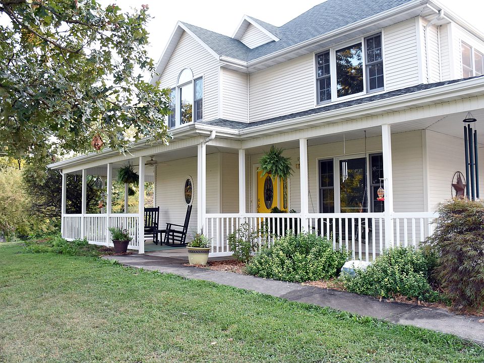 We have a contract on our house and open house is cancelled for 9/8. 573-694-3939 (agent number at top doesnt represent our listing). Lovely two-story home with a wrap-around porch on almost five acres. Enjoy your tea while sitting on the front porch or the back, overlooking your property. This home has 4 bedrooms (poss five if you didn't want the dining room). Beautiful, large kitchen is a dream to cook in. Has new countertops and flooring! House is freshly painted and well taken care of. Main level has kitchen, living room, laundry room, dining room/bedroom, master bedroom and master bath. Second floor has an upstairs hall that overlooks the living room. Also upstairs are two nice-size bedrooms joined by a Jack and Jill bath. (wonderful laundry drop hole into laundry room below). The basement has a large family room with room to put game tables for family and friends to enjoy while visiting. There is an additional bedroom downstairs along with a full bath and a small kitchenette. Additional smaller room can be used as 5th/6th bedroom or a cozy craft room with closet space. This house has tons of storage areas. The two-car garage currently functions as a 720 sq foot business area with carpet and wood flooring. Has a heating/AC unit installed - could be used as a bedroom for a college student or a craft room as well, or easily converted back to a garage! Below the garage is a nice workshop area. New deck lines the back of the house and overlooks a scenic view of your property and above ground pool. Fruit orchard with pear, apple and peach trees. Also has grapevines and blackberry bushes on the property. Realtors welcome at 3%.