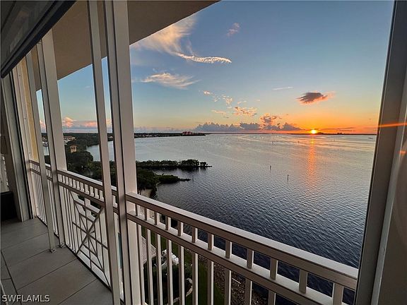 Enjoy One of a kind Southwest Florida waterfront sunsets, in the largest condominium of The Shores. 5 bedrooms in this spacious ninth floor turnkey condominium, 4580 ft.? of beautiful living area with two lanais featuring breath taking views. Both lanai's have electric hurricane shutters. Two of the guest rooms have private balconies with stunning views of Gulf Harbour's championship golf course. Private memberships are available for purchase to Gulf Harbour yacht and country club, #1 ranked SW Florida Club. True resort style living at its best!