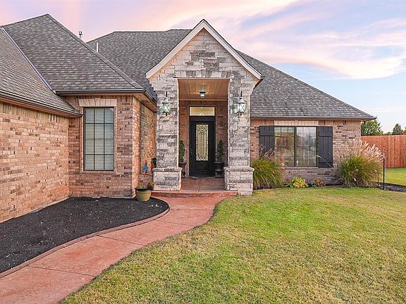 ** YOUR HOLIDAY WISH HAS COME TRUE - INCREDIBLE OPPORTUNITY - IMPROVED PRICE. ** Welcome to your private oasis, just minutes from Tinker, highway, Choctaw schools, in the sought-after Deerfield West addition, with no HOA fees! This one-of-a-kind SWM resale sits on over an acre, perfectly positioned on a corner lot at the entrance of a quiet cul-de-sac. It features 4 true bedrooms plus an additional flex room which could function as a fifth bedroom, playroom, sewing room, exercise room, additional office, etc. There is also a dedicated office, 3 bathrooms, and 3,660 sq ft all on one level (2,810 sq ft + an 850 sq ft second living/great room 2024 addition with breathtaking views of the amazing backyard). You’ll love the huge walk-in pantry, massive kitchen island, 5-burner gas stove, double ovens, and large dining room. All rooms are thoughtfully arranged for maximum privacy and functionality, with the primary suite offering dual closets, dual sinks, and an extra-large doorless shower. Step outside to your backyard retreat: a 36x18 gunite pool (installed April 2025) designed for extended enjoyment with a premium heater, removable LifeSaver fence, and child-proof gate. Relax on 2,000 sq ft of back patio, including a 12x16 reinforced pad ready for your future hot tub or swim spa, already equipped with plumbing and electrical. The oversized garage (850 sqft MOL) doubles as extended living space, climate-controlled with a mini-split heat pump, and includes a 6-person storm shelter plus floored attic storage. Additional upgrades include a whole-house water filtration system, a 4-stage reverse osmosis system at the kitchen sink, front/back timed sprinklers. S/W corner of the property has been prepped with a gravel base and dual water faucets for raised gardens and a sport court, while still offering versatility for countless other uses. Move in and start living the resort lifestyle every day. All information is deemed accurate, buyer and buyer’s agent to verify.