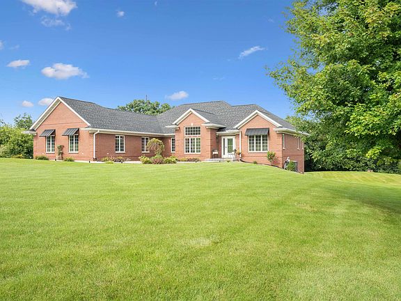 Beautifully updated walkout ranch home on picturesque 3.27 acre lot with an addition 12.12 acre lot that is zoned Ag. The 12/12 acre parcel is wooded plus bottom land with creek running through it and would work well for horses or cattle. The house has tons of natural light coming in this custom built contractor home with its large Anderson windows, which the ones on the back of the home were professionally tinted. The home has 9' & 11' foot ceilings along with some custom tray ceilings. Updated gorgeous engineered hardwood floors, 3 sided fireplace, formal din rm or den or office, built in audio system/surround sound, and in-floor heat in LL. Spacious 3 car gar with a deep 1 car in the LL. Lots of updates to the natural cherry kitchen with large walk-in pantry, black stainless steel appls, 9' black painted island with prep sink & beverage fridge, & granite counters. Spacious laundry room with new washer & dryer. Master suite with nice walk-in closet, double jet tub, & dual head custom walk-in shower. Finished LL that has in-floor heat with family room, bath, & 3 conforming bedrooms. Huge deck that leads down to a 33 ft above ground pool that can stay or seller will remove, if requested. Lots of updates over the past 5 years. New roof spring of 2025. Realtor owned.