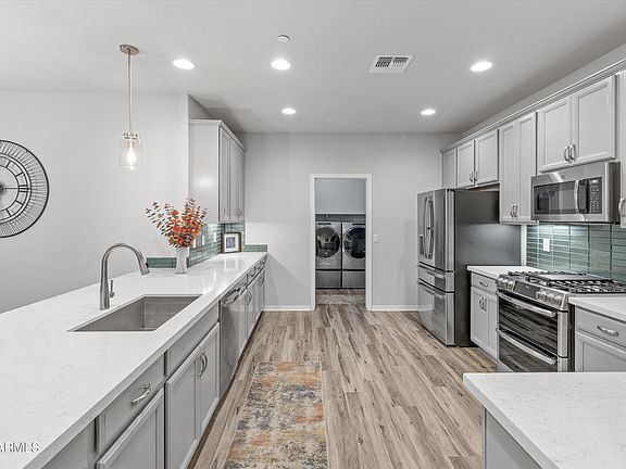 Ready to tee off into the ultimate lifestyle? Cachet at the Wigwam offers an unbeatable value, perfectly located on the 10th hole of the Red Course with stunning golf course views. Step inside to find elegant flooring, soft neutral tones, and a versatile den that offers endless possibilities. The stylish kitchen features large cabinets with crown molding, a tile backsplash, quartz countertops, matching appliances, and a breakfast bar. The primary suite includes a tiled shower, dual sinks, and a spacious walk-in closet. Unwind on the covered patio, taking in the beautiful Arizona evenings under the firepit and breathtaking scenery. Fantastic amenities include a pool, clubhouse, and fitness center. This is AZ outdoor/indoor living at its finest!