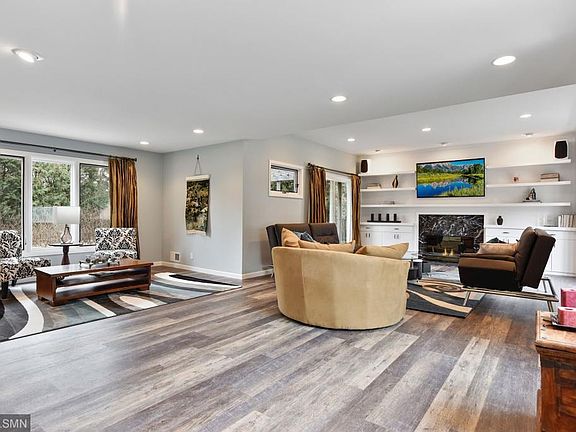 You can have it all when you purchase this outstanding 4000 square foot two-story Minnetonka home nestled into idyllic landscaped surroundings.This elegant, graceful residence features spacious living areas soaked in sunlight. The flow of indoor and outdoor spaces is seamless and ideally suited to entertaining friends and family. The resort style yet intimate backyard with in-ground pool is fenced-in for privacy. The main level is spacious, open and light-filled. It offers two distinct gathering areas, a family room, and a more formal living room. Well appointed yet functional kitchen. The warmth of cherry cabinets, granite counters, and professional quality stainless steel appliances is a delight. The kitchen island includes a breakfast bar, with overhead pendant lighting. The flow into the formal dining area features one of three fireplaces creating the perfect venue for both quiet family dinners or formal entertaining.