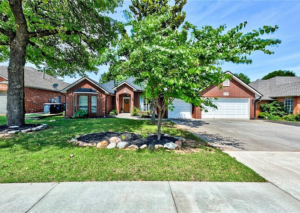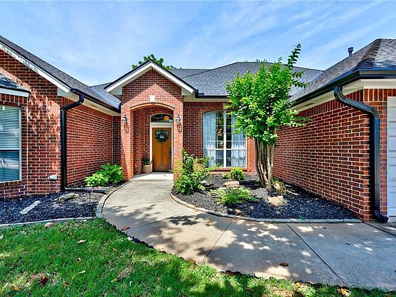 One Level, 4 bed home on a treed, private .25 acre lot in SE Edmond. Built in 1996 and recently refreshed with unique updates reflecting a playful mix of styles give this home a refreshingly different post-modern vibe. Remodeled Kitchen with Quartz Countertops, Mosaic Tile Backsplash, Newly Painted Cabinets, LG Appliances, Kohler porcelain sink, Retro Wall-Mounted Vent Hood, Travertine Tile plank flooring in the main areas. New Exterior & Interior wall/ceiling paint, carpet & Pad throughout. New Retro Lighting. Entertainment Center in the Living Room & Heatilator Fireplace with Carrera Marble tile Surround. Split Plan, Large Bedrooms, Remodeled Master Bath w/Raised Panel wainscoting, Satin Brass Fixtures, Walk-In Closet, Freestanding Claw-foot Tub, redesigned shower w/designer tile & Frameless glass surround (installing 6/30). New Roof & OSB decking/Gutters (2019), New Water Heater. 3-Car Garage, Fenced Yard, Mature Landscaping & less than 3 (low traffic) minutes to I-35 & turnpike