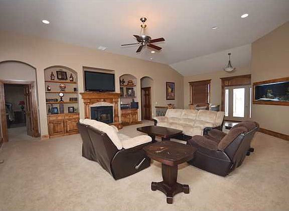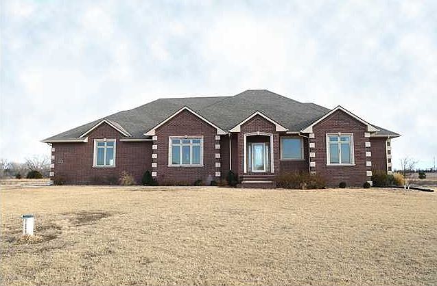 Acreage within minuets of the city/shopping and in Maize school district. Situated on almost 6 acres is this approximately 4600 sf FULL BRICK home with open floor plan. This one owner custom built home has all of the custom amenities you have been searching for. With 5 bedrooms and 3 full baths 1 half bath 3 car side load garage solid wood cherry floors pellet stove surround sound inside and outside coffered ceilings in master tiled shower walk in closet custom blinds formal dining eating bar double ovens walk in pantry stainless steel appliances 3 zones for temperature control full wet bar in basement w/full size refrigerator built ins throughout mud roof drop zone composite over-sized deck geothermal heating and cooling 2 wells sprinkler system walk out/walk up basement. Everywhere you look there is an upgrade! No HOA dues to worry about here!