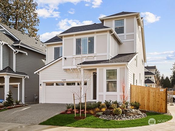 Just released! Shelby Lane. A boutique enclave of 9 homes. 2352 West facing plan with 2 car garage boasts a lower-level kitchen/dining/living area with gorgeous chef's kitchen, gas range, soft close cabinetry and sleek quartz counters. Farmhouse sink w/motion sensor faucet. Gas fireplace and patio opens to nice size yard. Hard surface flooring on lower level with rich trim details throughout. Owner's suite with luxe shower and bath on 2nd floor, soaker tub and WIC. This home has generous guest bedrooms and extra bonus rooms! Includes blinds, all appliances + A/C! Fabulous Lynnwood location steps to Lake Serene and top Mukilteo Schools. Move in March! 4 Sold already!