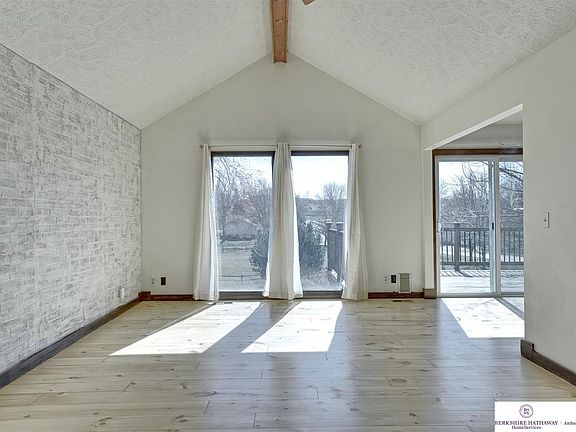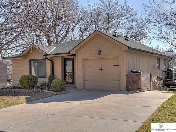 This is a must see cute ranch located in the Millard School district at a great price! The family room greets with vaulted ceilings and high and sightly views out of the large windows and wood floors. The kitchen features updated stainless steel appliances, copper faucet, a breakfast bar, dining area, wood floors and plenty of cabinet space. The master bedroom has a large walk in closet. The finished walkout lower level includes a living room, 3rd bedroom, den/office, 3/4 bath, laundry room & fresh paint throughout. Other amenities include new tile in the entryway, new light fixtures throughout, loose lay plank flooring in bedrooms on the main level, newer roof & gutters, new front screen door, newer garage door & opener with keypad & updated deck. In the yard you'll find a wood buring firepit & extensive landscaping. Make sure to notice the neighborhood pool & clubhouse. Pool access for residents of The Meadows is only $35 year