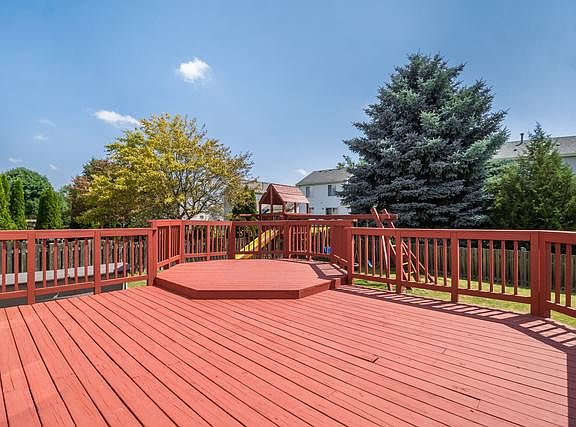 Meticulously cared for and loved, near 2000 SQ FT home in popular Lakewood Falls! 4 beds, 2 and 2 half bath, freshly painted home, is the perfect open concept plan! Main level boasts large family room featuring wood burning/gas fireplace, open to kitchen with L shaped peninsula, loads of cabinetry, and gorgeous ceramic tile! Large primary bedroom suite on second floor with walk in closet and private spa bath! Additional 3 large brooms on second level and laundry space! Finished basement is perfect for entertaining guests or working from home with additional half bath, recreation area and bonus office space or guest bedroom! Large fenced in backyard with double layered freshly painted deck, 2 sheds, play set, and loads of room for so much more! Formal living and dining rooms on main level. Move in ready and neutral paint colors thru-out! Newer furnace, AC, garbage disposal, dishwasher, and ejector pump! Within walking distance to grade school and parks! This home has great space and features.