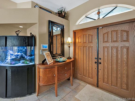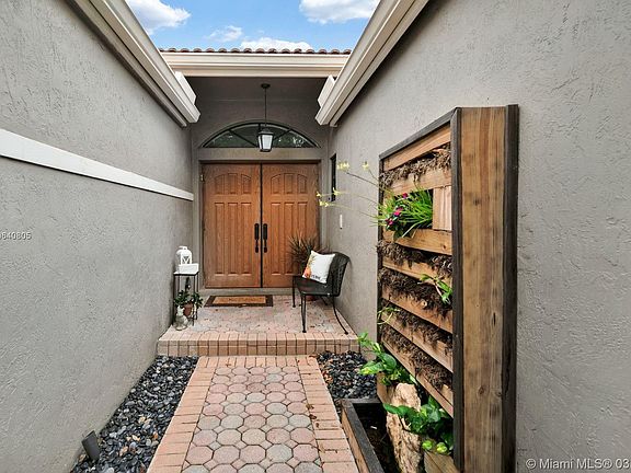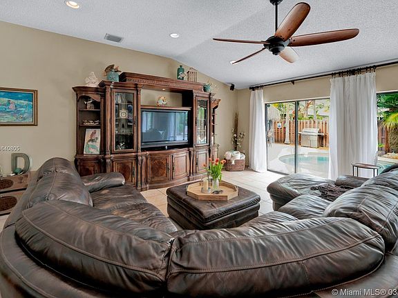 Beautiful home on a corner lot. Wonderful, large living room with inviting view and doors opening onto a great outdoor area perfect for entertaining. Spacious bedrooms with walk-in closets. Lot of light throughout the house. Modern kitchen with convenient breakfast bar. Lush front and backyard landscaping. New front doors and hurricane shutters. Beautiful pool area with free form pool, tiki bar, BBQ and patio. Fenced yard has room for RV or boat. Front windows are hurricane impact resistant. 3/2 plus converted garage. Per owner, the square footage is larger than tax roll.