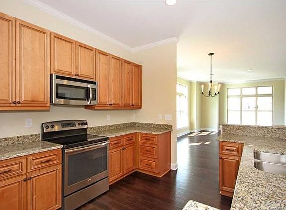 This gorgeous brick end unit offers upgrades galore. Large open floor plan w/master BR down consists of hardwoods, stainless steel appliances, beautiful tall 42" cabinets, granite counters in kitchen and baths, tile shower with dual sinks in master, desk area off kitchen leading to laundry. Large bedrooms upstairs and an over-sized sitting area. Don't miss the huge attic space off the walk in closet for extra storage, plus the spacious 2 car garage.