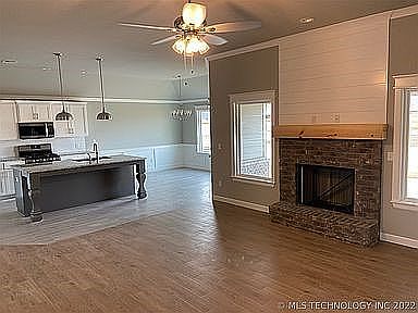 Beautiful 2021construction home in desirable neighborhood. 4 bedroom, 2 bath, 3 car garage with garage door openers. Home is wired for internet and has security system. Washer, dryer and refrigerator stay with home. Back yard is fully fenced and patio is wired for outside tv. House is just a few minutes from Collinsville, Owasso and Tulsa. Country living with town and shopping just a short drive.
