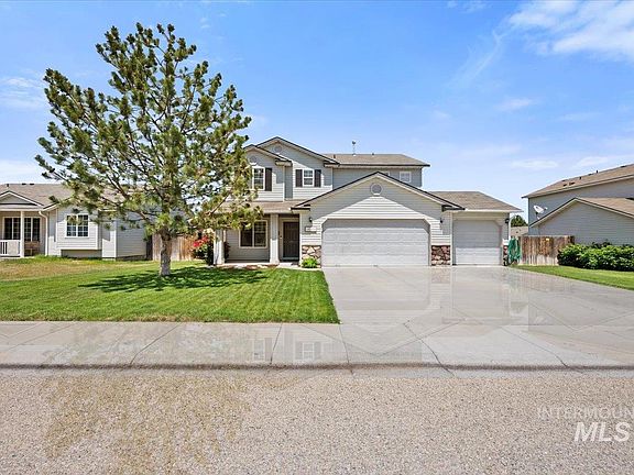 Assumable VA loan at 2.5% makes this an exceptional chance to acquire an affordable home or investment. Beautiful craftsman style home in excellent condition. With an open floor plan on main level and a spacious concrete patio, it is perfect for hosting gatherings and entertaining. Numerous upgrades such as hardwood floors, enhanced lighting, textured garage floors, new flooring in bathroom, a storage shed with power, and more. The location is incredibly convenient, offering easy access to freeway, shopping centers, schools and various local amenities. Close to Lake Lowell, parks, the Snake River and wine country.