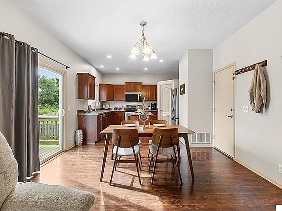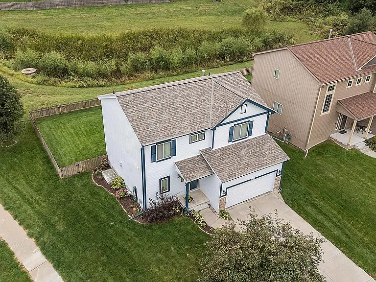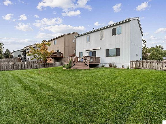 Welcome to one of West Omaha's most premier lots backing to peaceful nature with a layout rarely found. Positioned on a spacious corner lot, this home shines with an open floor plan, warm neutral tones, and a light-filled living room anchored by a stone fireplace. The kitchen impresses with a center island, pantry, stainless steel appliances, modern countertops, and a huge eat-in area. Upstairs offers a serene primary suite with dual vanity and shower, plus two more oversized bedrooms, full bath, laundry, and flex space. The finished basement features a large rec room, half bath, and double storage areas. Step outside to your private retreat: fully fenced flat yard, upgraded Trex deck, and sprinkler system. Near parks, shopping, and schools this one checks every box.