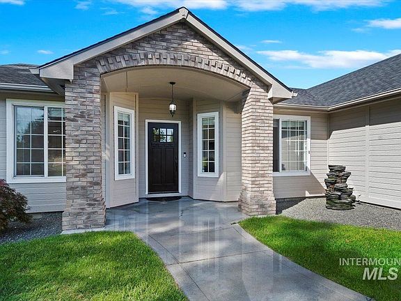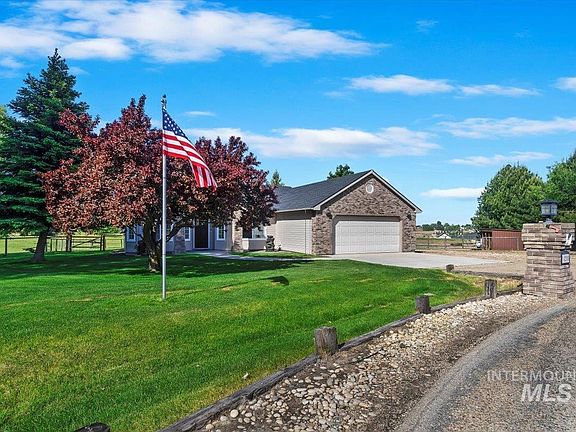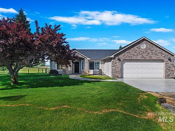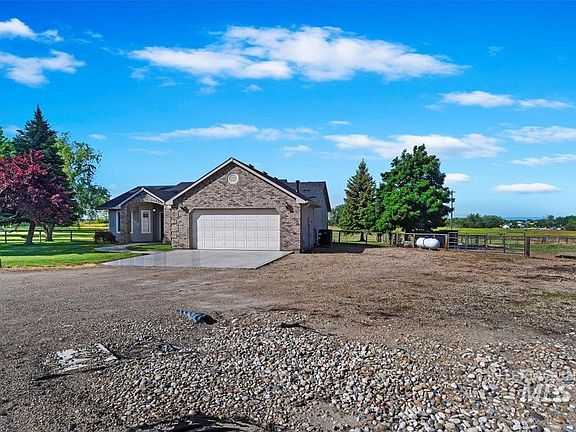 Nestled in a serene cul-de-sac, this stunning 3 bed plus office, 2 bath home offers the perfect blend of country living & contemporary comforts. Spanning 2.58 fully-fenced irrigated acres, this property provides ample space, tranquility, & a host of fantastic features. Inside, enjoy a beautifully updated interior w/ LVP flooring throughout, elegant quartz countertops, & sleek SS appliances. The split bedroom floor plan ensures privacy, while the master suite boasts a vaulted ceiling, full tile shower, dual vanities & a large walk-in closet. Cozy up by the fireplace in the spacious living room, awash w/ natural light. Brand-new roof in 2024. The generously-sized yard is equipped with full irrigation and sprinklers, making it a gardener’s paradise or perfect hobby farm. Relax on the covered patio and enjoy the sunsets. Take advantage of RV parking for your adventures.