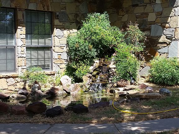 Lots of trees and a nice water feature as you walk up to the house gives a calm country feel. Wet bar in the living room. Dining room could be second living. Nice sized bedrooms have large closets. Inside utility has lots of storage.