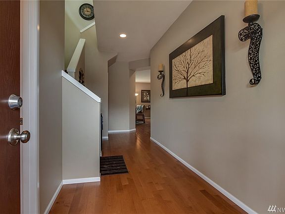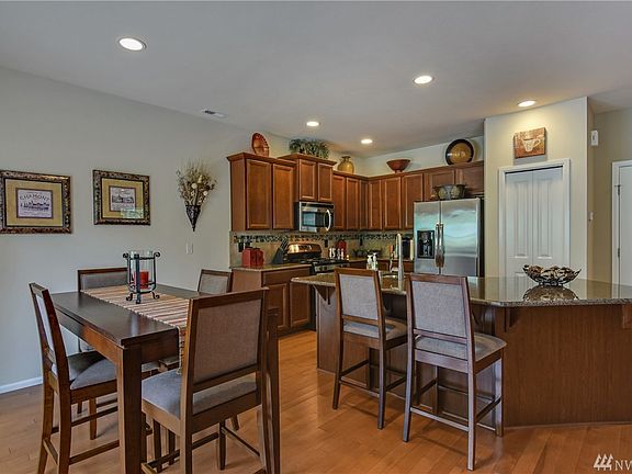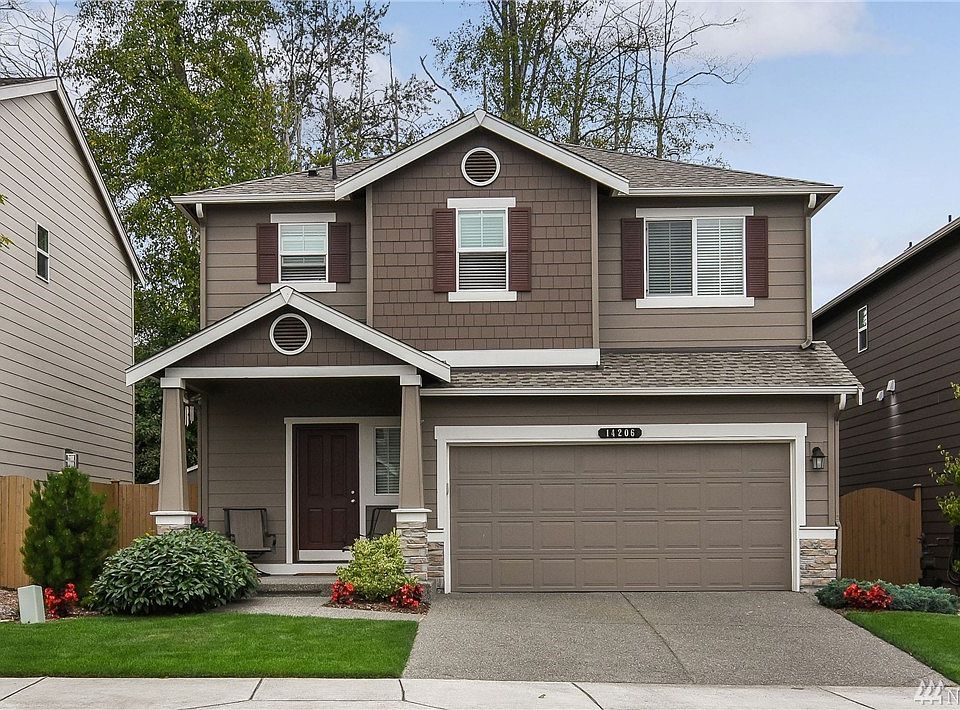 Immaculate DR Horton home. Kitchen features island eating bar, solid granite counters, stainless appliances, abundant cabinets and hardwoods throughout the entire main floor. Lovely master suite with soaking tub, dual vanities, walk-in closet. Office & 2 additional bedrooms. Fully fenced backyard, hot tub entertaining sized private patio. Backs to greenbelt. EZ access to I-5, shopping,Martha Lake.The charming covered front porch says,"Welcome Home" .