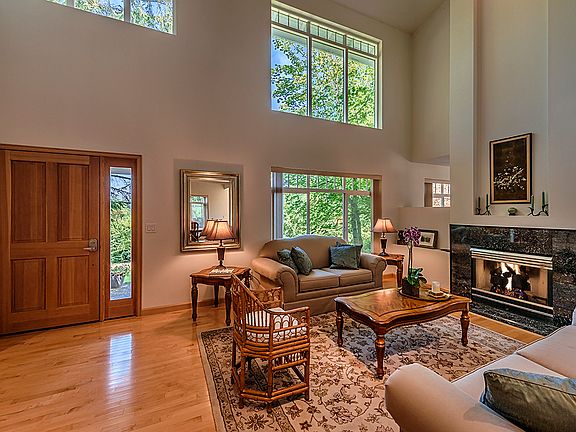 Enjoy living in your own private park on shy 1.3?? acres in a stunning architectural home. 24???? soaring wall of windows let light flood across a suspended walk way which bridges 2 master suites. Gourmet kitchen w/island, top end appliances, casual eating space opens to family room. Formal living & dining areas + den. With no wasted space, this efficient floor plan lives large! Spotless heated garage houses 3 cars + 4th bay for a shop. Private beaches, dock, & mooring buoys through Del Mar.