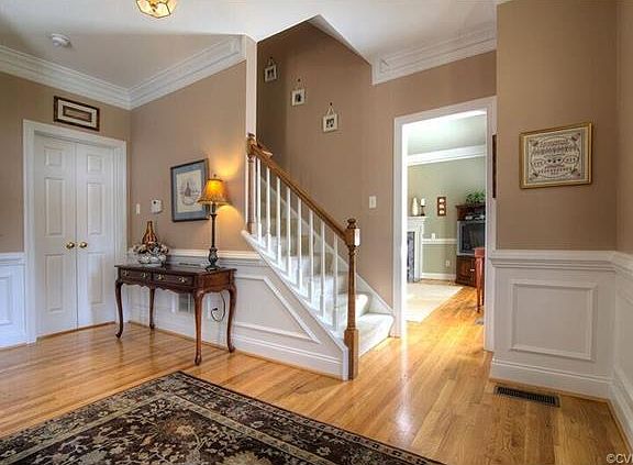 STUNNING 5 BEDROOM 31/2 BATH, BRICK COLONIAL IN SOUGHT AFTER BROOKSTONE! Situated at the end of a cul-de-sac on a private wooded lot, this 3244 sq. ft. home is completely move-in ready! The current owners have meticulously maintained and cared for every inch of this house! You will enter into a spacious and neutral Foyer that features beautiful crown moulding. The Formal Living room features gorgeous arch ways, gleaming hardwood flooring, and loads of natural light! The GORGEOUS renovated kitchen features quartz counter tops, recessed lighting, hardwood floors, gas cooking, stainless appliances, pantry, subway tile backsplash, and so much more! The kitchen seamlessly flows into the sunny Florida room w/deck access. The roomy yet cozy den features a gas fireplace, built-in cherry cabinets, hardwood floors! All bedrooms are spacious, bright, and neutral. The Master Suite easily accommodates over sized furniture and features a beautifully renovated en suite bath. Additional features include newer HVAC, dual zone heating/air, a walk up attic for additional storage, paved driveway, & a 2 car garage! Easy access to Robious Rd, shops, dining, & excellent Chesterfield Co. schools!