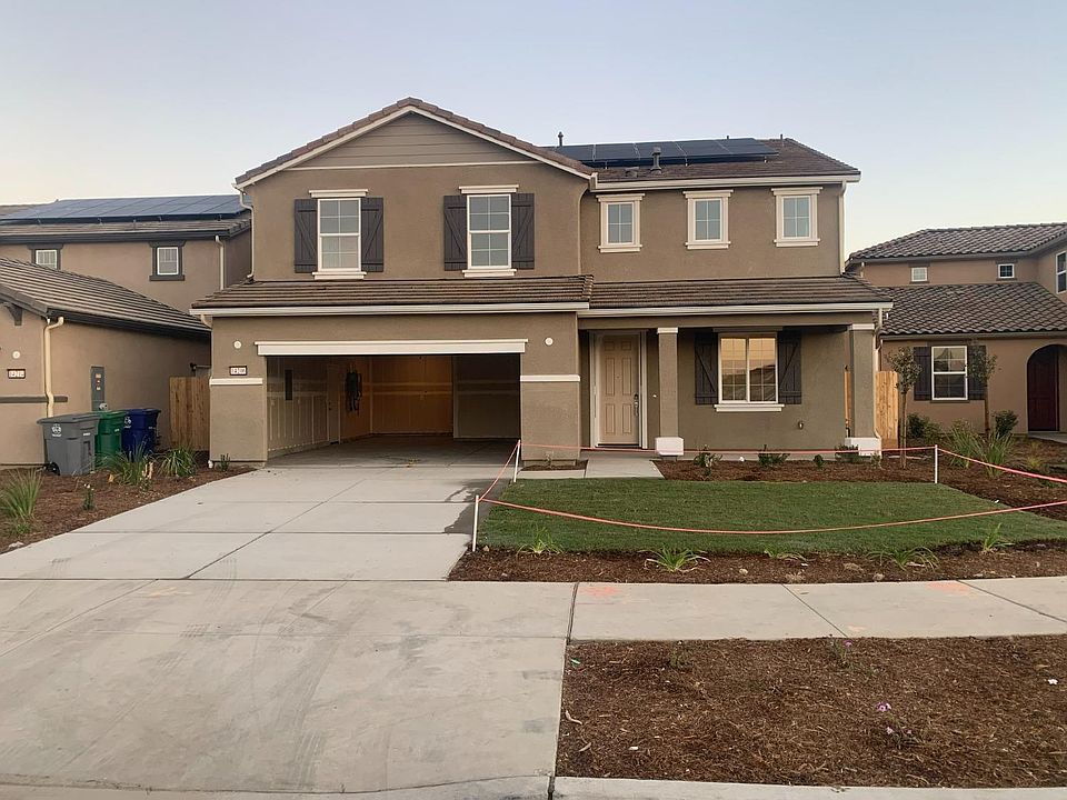 Upon entering the Crimson, a through view to the rear yard from the great room brightens the space. The oversized kitchen island overlooks the spacious great room, taking full advantage of the natural light from the sliding glass door. This space is great for entertaining. Upstairs, a bright and open bonus room looks onto the front yard, providing a great hang-out spot for the kids and their friends. A full hall bath serves the four roomy bedrooms upstairs. This home is perfect for the growing household. The cozy Primary Suite, tucked at the rear of the home feels like a retreat with its private views of the backyard. The Primary Suite bath boasts ample storage via the extra linen and walk-in closet.This home features the following options and upgrades: Upgraded Tile Roof Downstairs Bedroom and Full Bath with Step-in Shower in Lieu of Dining Room Pre-Plumb for Sink at Garage Gas BBQ Stub at Rear Yard Upgraded White Cabinets Upgraded Manitoba White Quartz Countertops at Kitchen Recycle Bin Pull-Out Drawer at Kitchen Recessed LED Can Lights at Great Room 2nd Sink at Bath 2 And More!Located on lot 59 at The Crossings II by Century Communities