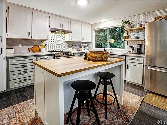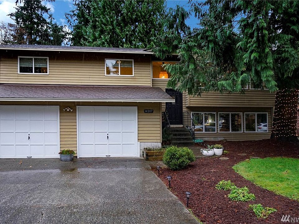 Lovingly remodeled 5 bedroom home in Silver Firs. 3 bedrooms upstairs, 2 bedrooms down. The Primary bedroom features an en-suite bathroom. 5th bedroom has plumbing. Newer windows, flooring & kitchen appliances. TV's are included! Designer fixtures throughout. Large spaces have the perfect mix of light & privacy. 2-car garage & RV parking/hookups. Berry patch & kiwi vine. Located on a corner lot and backed by community greenspace & trail, less than a block from the elementary! Welcome Home.