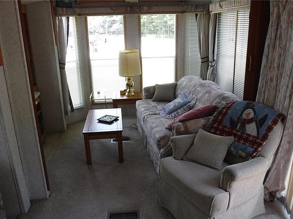 This "looks" like new trailer is located on its own land. This is a 1 bedroom trailer that has been well cared for. Very close to beautiful Lake Bonaparte. This could be used for lake quests if you do not have room at your camp. This lot is also big enough to build something.