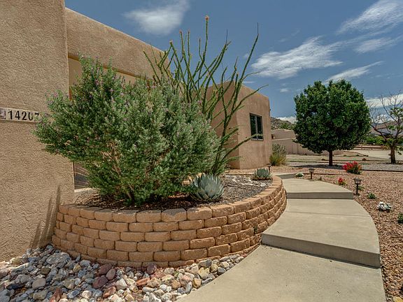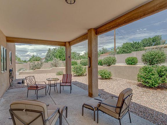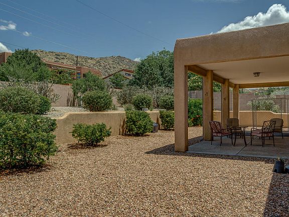 Energy Efficient 11 year old, Custom built,single level home in sought-after Sandia FOOTHILLS. Radiant in-floor heat,9 zones; back-up gas CFA furnace; Refrigerated Air. High ceilings, recessed lights, many skylights,very open design. Pella wood casement windows!! Interior Hallways and Doors are extra wide. Built-in vacuum system,hot water on demand. Huge Great Room open to Cook's Kitchen--tons of cabinets(double pull-outs in all lowers) many drawers, pastry island. Nearby windowed Laundry Room w/sink, space for extra fridge + freezer, sep.walk-in pantry. -Master bedroom & office on one side,2 bedrooms on opposite side, for Privacy. 616 sq.ft. Garage,added shelves & Traks stay.Landscaping Auto-timed, easy care,.35 Acre. CLOSE PROXIMITY to Sandia Labs, Kirtland AFB. Details in House