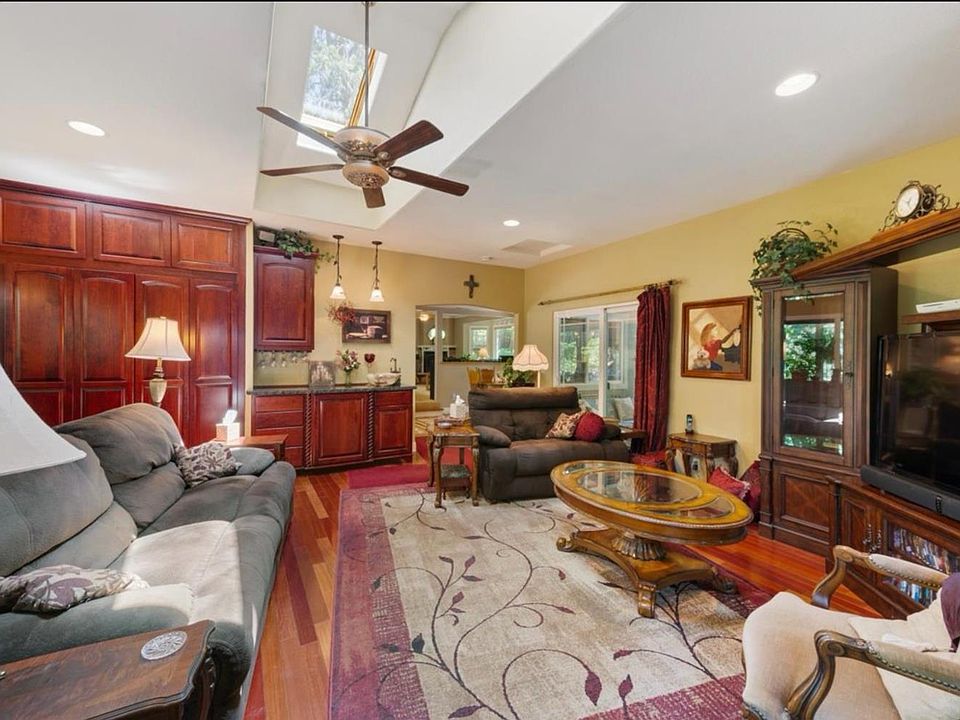 Here is your home sweet home. You will love this quality, custom home on .72 acres only 2.5 miles to town. Updated in 2010, this flooring contractor spared no cost on the Brazillan cherry wood flooring covering the living and dining room. The living room opens onto a covered patio complete with a 19 by 11 foot awning .The kitchen will make any cook happy with the granite countertops, 8 foot eating bar, custom eucalyptus cabinets and a garden window. The kitchen floor is cherry wood herringbone design with tile inserts. Both bathrooms have been tastefully updated with custom eucalyptus cabinets, vessel sinks and tile showers and flooring. There is a wet bar in the living room with a frig and cherry wood cabinets.