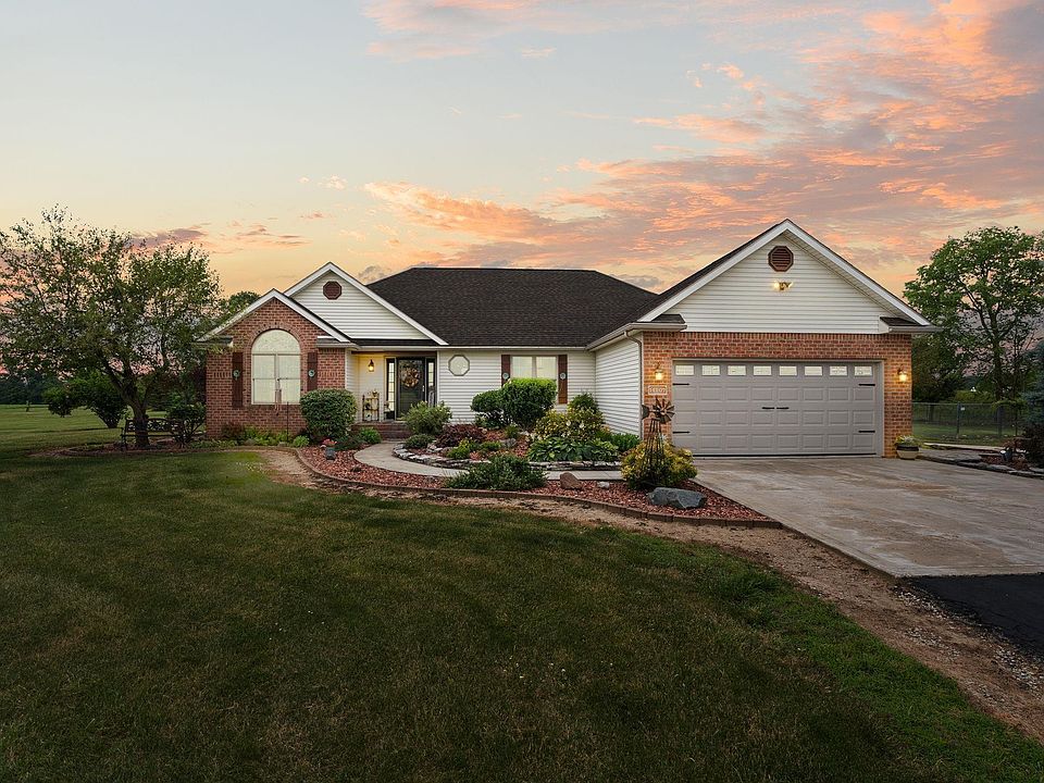 Nestled on 7.26 acres of stunning countryside, this exceptional property is a true haven for nature lovers and those seeking serene, private living. The centerpiece is a picturesque 1 1/4 acre stocked pond, perfect for fishing and relaxing by the water. Adjacent to the pond is a private beach complete with a charming gazebo, offering a perfect spot for unwinding. The property also features a 1/4 acre wildlife pond, teeming with a variety of wildlife, and a tranquil creek running along the back of the property. For those with a green thumb, the numerous fruit trees and the wooded area provide ample opportunities for gardening and exploration. The interior of the home is just as impressive. The kitchen was updated in 2024, featuring modern amenities and sleek finishes. The living room boasts a cozy fireplace and cathedral ceilings, creating a warm and inviting atmosphere. The primary bedroom also features cathedral ceilings and crown molding, adding a touch of elegance. Energy efficiency is a priority with geothermal heating, and the home is adorned with six-panel doors throughout. The full basement provides additional storage or living space, while the 4 seasons room offers breathtaking views of the pond year-round. The heated garage ensures comfort during the colder months, and the large pole barn with a wood-burning stove is perfect for hobbies or storage. This property is a unique blend of natural beauty and modern comfort, offering a lifestyle that is both peaceful and luxurious. Don't miss your chance to own this slice of paradise.