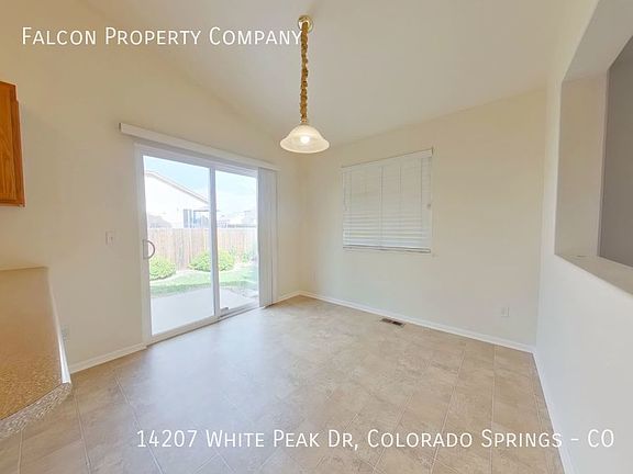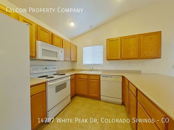 This 1114 square foot apartment home has 3 bedrooms and 2.0 bathrooms. This home is located at 14207 White Peak Dr, Colorado Springs, CO 80921.