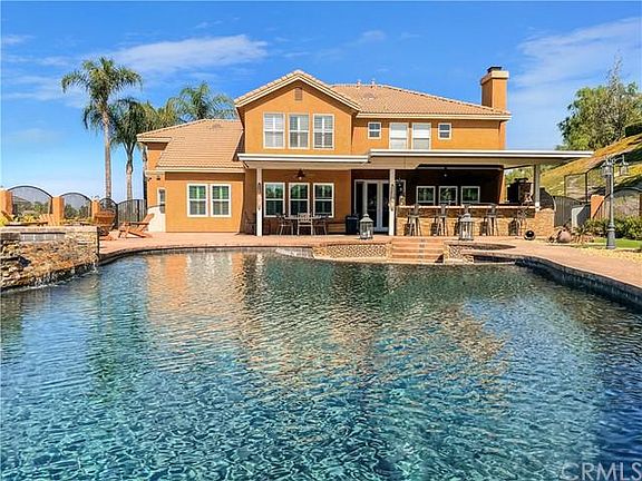 Beautiful Private Hill Top Estate Located in a Highly Prestigious Community. Here is your Chance to own a True Entertainers Paradise!! Walk outside to your own Personal Resort Style back yard with a Custom Infinity Edge Swimming Pool & Jacuzzi complimented by 2 Extra Large Gas Fire pits with Plenty of Seating for friends & Family. For you Golf Enthusiasts, there is a large Putting green with Views of the Rolling Hills and surrounding estates. Once you've worked up an appetite, simply make your way to the Oversized Custom BBQ Island & Fire Up the 2 Side by side BBQ's, Custom Smoker, Built-in Pizza Oven and Built-in Wok. The BBQ Island has plenty of room for seating along with a built in Fireplace, TV, Refrigerator & Sink. This is complimented by a Large Custom Patio Cover with Custom Ceiling fans and Beautiful Lighting. Throughout the Back yard you'll find Custom Concrete with tons of room for additional tables & chairs, perfect for those large gatherings. The Back yard is enhanced with Beautiful Palm Trees, Planter beds & Additional Custom Lighting for those Evening Gatherings. That's not all! This 2 Story Home has a Spacious Front yard with an oversized driveway and 3 car Garage that gives you plenty of space for all your vehicles. Upon entering the home you're greeted with a Bright & Open Floor plan, Gorgeous Upgraded Flooring, Custom Paint, Custom Crown Molding, Custom Window Coverings, Custom Kitchen Cabinets with Granite Countertops, Custom Built-in Wine Cabinet with Granite Countertops, Custom Bathrooms with Beautiful Vanities and Upgraded Tiled Showers. This Open Concept Home features a Large Living Room, Family Room, Dining Room & Beautiful Kitchen. The Gorgeous Kitchen has Granite Countertops, Beautiful Custom Cabinetry, High End Stainless Appliances and a Magnificent View of your Exquisite Entertainers Backyard. Upstairs, the Master Suite is complete with a Custom Master Bath with Separate Walk-in Shower and Custom Tile work, Soaking Bathtub, Dual Vanity and a Massive Walk-in closet. This is a Highly Desired Neighborhood, Central to Schools & Shopping Centers. Don't let this home pass you by. Your Dream Home Awaits!