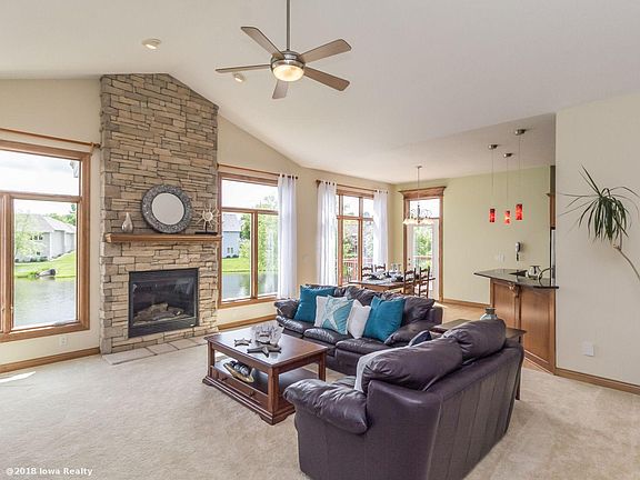 Looking for lake views from each window? This rare custom-built ranch home on Bristol Cove Lake is the perfect location Super spacious open floor plan in prime location on ½ acre lot. Great attention to detail throughout with over 2,370 s.f. on main floor, beautiful hardwood floors in entry and formal dining area and 10' ceilings. Inviting family room with fireplace. Great kitchen with granite, SS appliances and another dining area that leads out to deck and fabulous views of the lake. Spacious MBR suite walk-in closet and 2 other closets, dual vanities, jetted tub, and large shower with dual heads. Two additional BR's Jack-&-Jill bath, plus powder room and main level laundry room. The daylight basement is stubbed for bath, wet bar and fireplace. Framed for 2 bedrooms and family room. Radon mitigation system installed, irrigation system and wired for security system. Prime Location in Waukee Schools Move-in ready