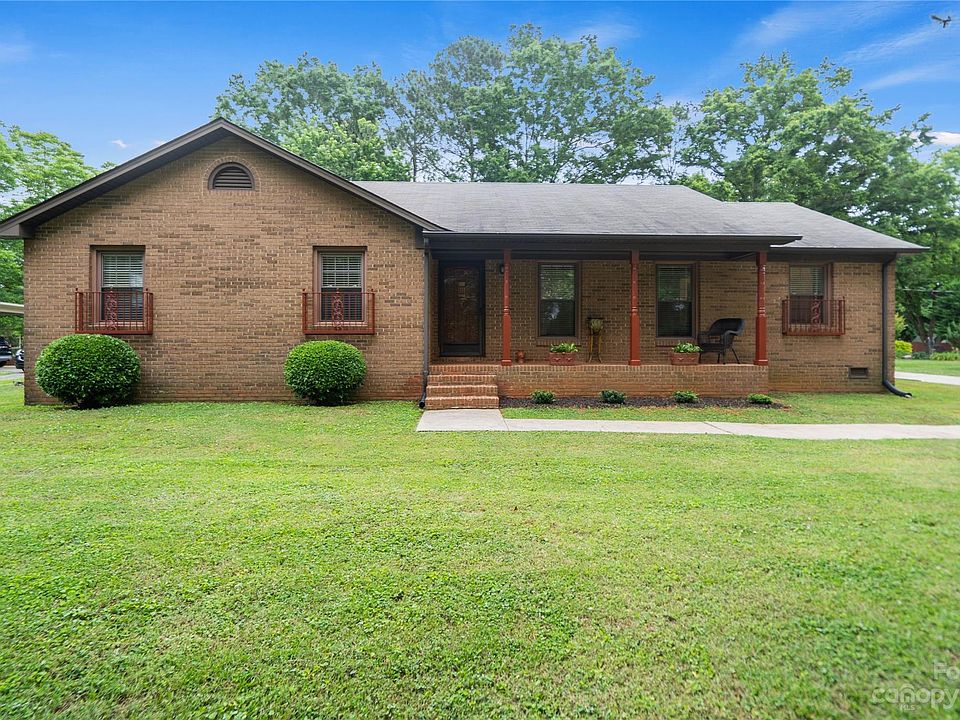 The location you've looking for! 3/2 Brick ranch on a quiet street with mature trees in front & back. 2 car carport, utility room. Granite countertops and stainless steel appliances convey. Ceramic tile bathrooms. Beautiful rocking chair front porch. Conveniently located to shops, police, fire, library services, banks, medical/dentists services, restaurants, I-485 & grocery stores! House is ready for your updates! See the 3D tour so you can see the beauty of this property.