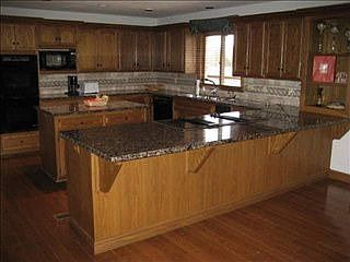 Now $49,100 under original list price! Brick ranch w/ 3 car & circle drive. Walkout bsmt. 7 access points to deck across full-length of house and patio below it. On #15 teebox (S course). Views of 3 lakes and of # 14 & 16 greens & # 17 teebox. Spacious entry foyer with double sky-light illuminating stairwell to lower level also. Kitchen Hearth Rm/Fam Rm & separate dining beyond opposite side of kitchen is accomodating and versatile enough for genuinely relaxed or more formal entertaining/dining. 11x5 walk-in pantry. 11x7 laundry rm. Abundant tile, granite and wood, including blinds. Fresh interior paint thruout, new carpet in main-flr BRs. Built-ins galore in this beautifully adaptable floor plan, and walk-in closets in each BR; two for MBR. Gorgeous master bath windows, perfect morning light. Sub-Zero in downstairs kitchen/bar as well as up. 3-sided bar serves between relaxing Family Room and Game Area and Rec Area w/ space for pool table and 3-hole putting green. Go to & from the patio at either end. Separate 15x11 bsmt Play Rm/Bonus Rm, 12x12 Ofc/Craft Rm. Many built-in & unattached cabinets in oversize garage, space for golf cart, water faucet, and freshly painted floor.
